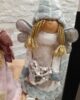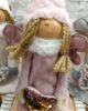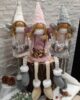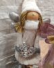 Angelo seduto con gambe lunghe. Bellissimo vestito in velluto a costine, cappello e rifiniture in morbida pelliccia e raffinato cuore in paillettes. Disponibile in tre colori.
