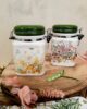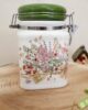 Barattolo in ceramica con gancio di chiusura e guarnizione in gomma per una perfetta chiusura ermetica. Romantica fantasia primaverile fiori rosa. Confezionato in scatola regalo.