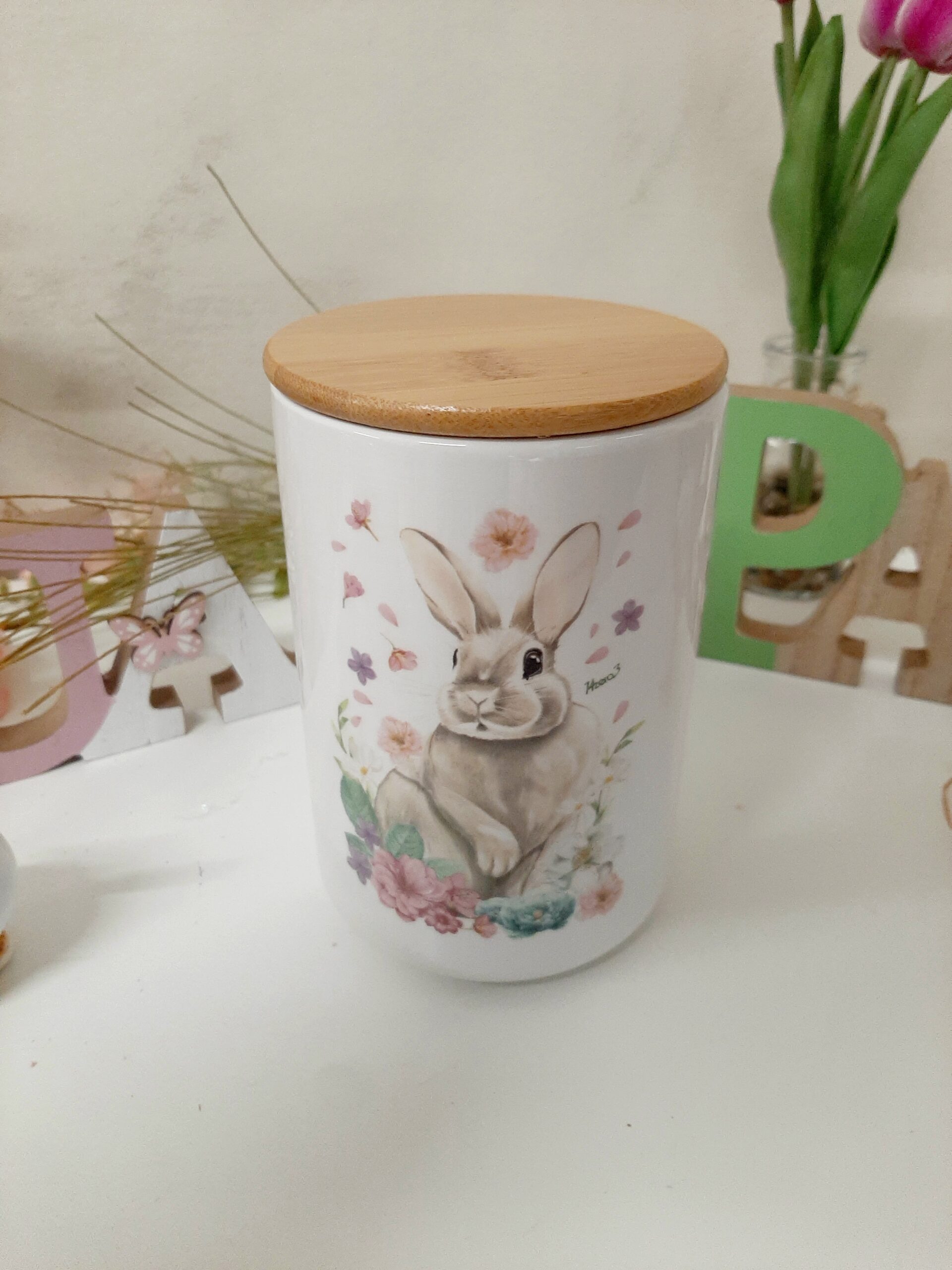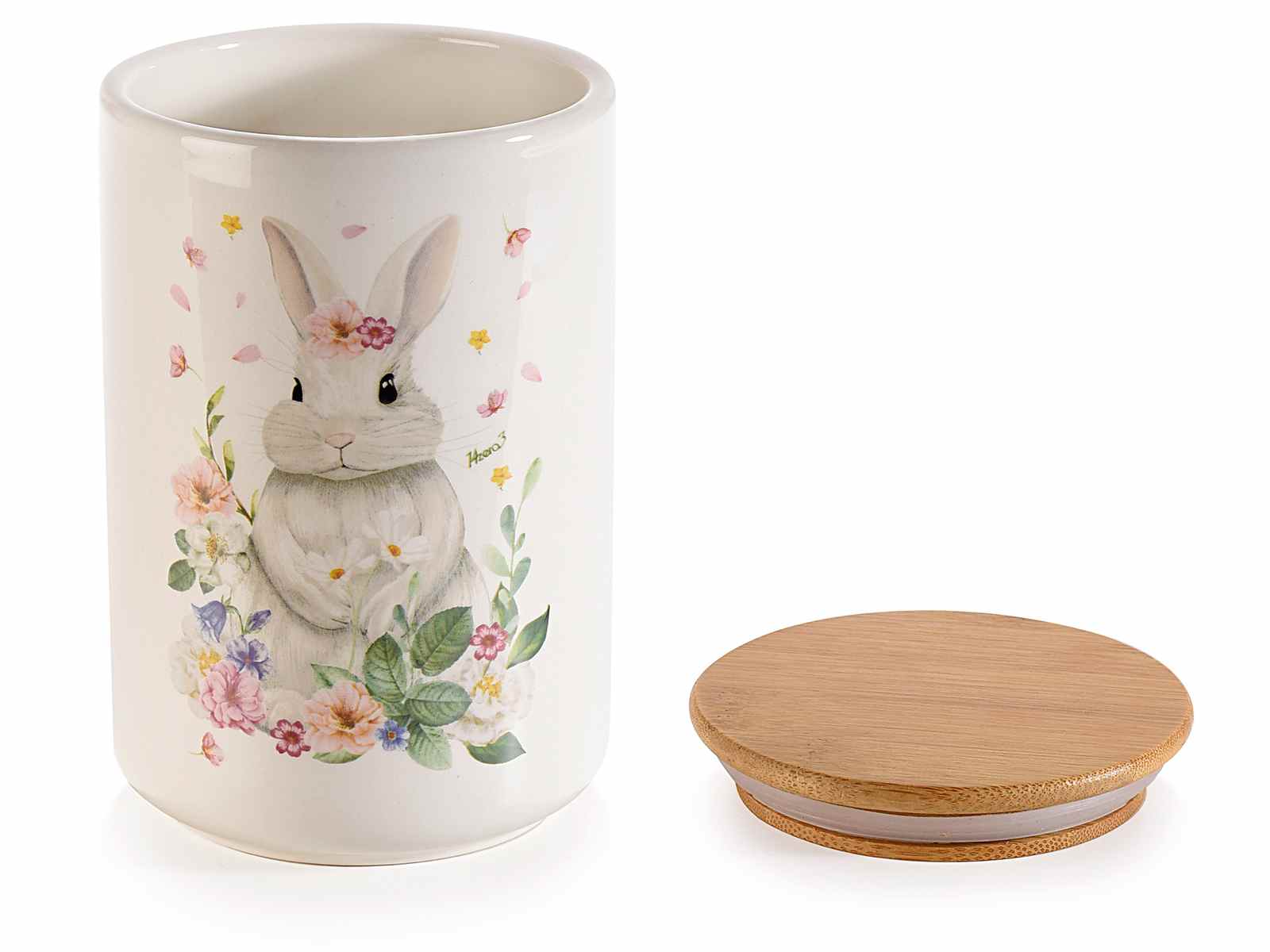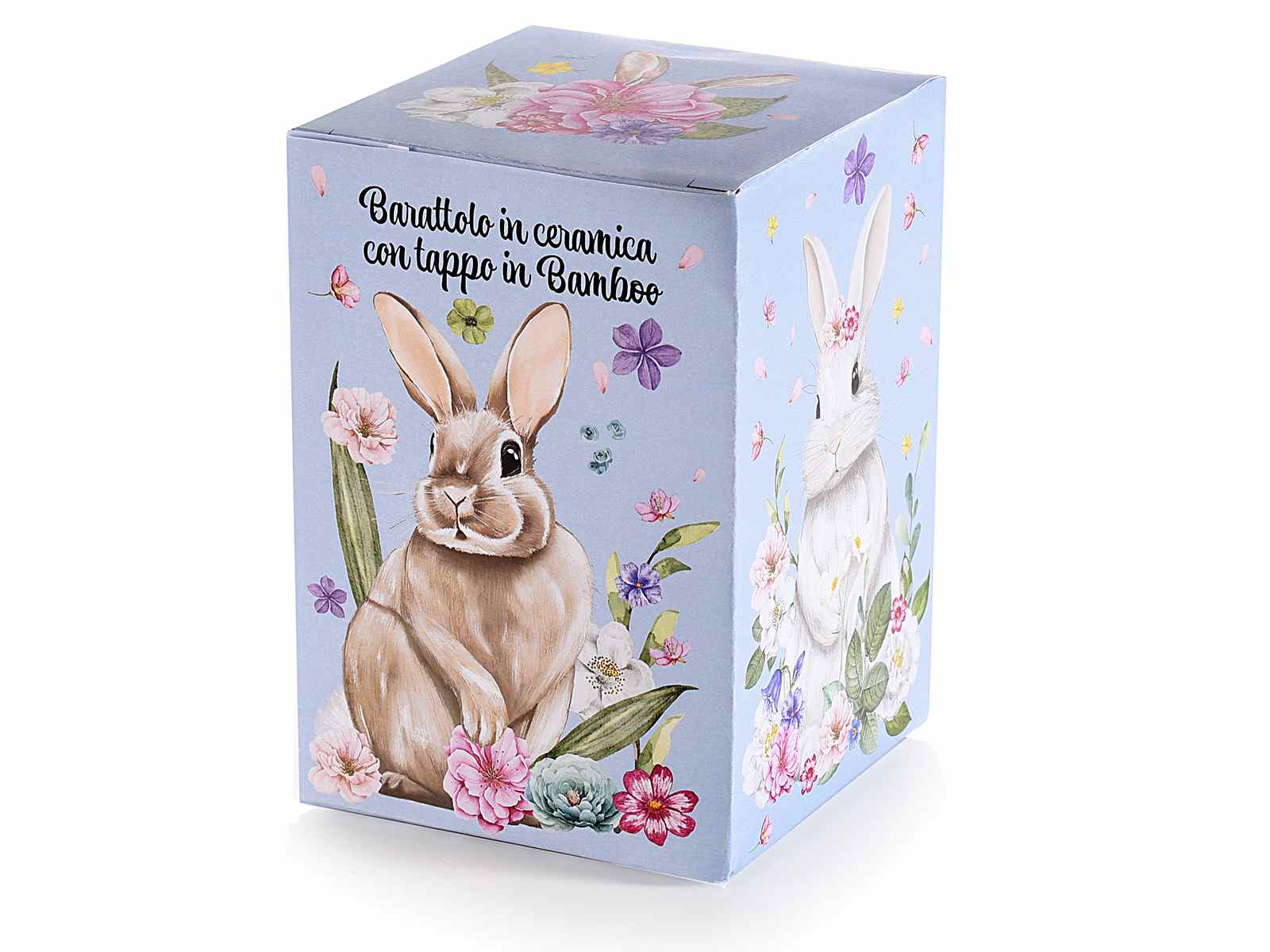 Barattolo di Pasqua in ceramica alimentare con coperchio in bamboo con chiusura ermetica e scatola regalo.
