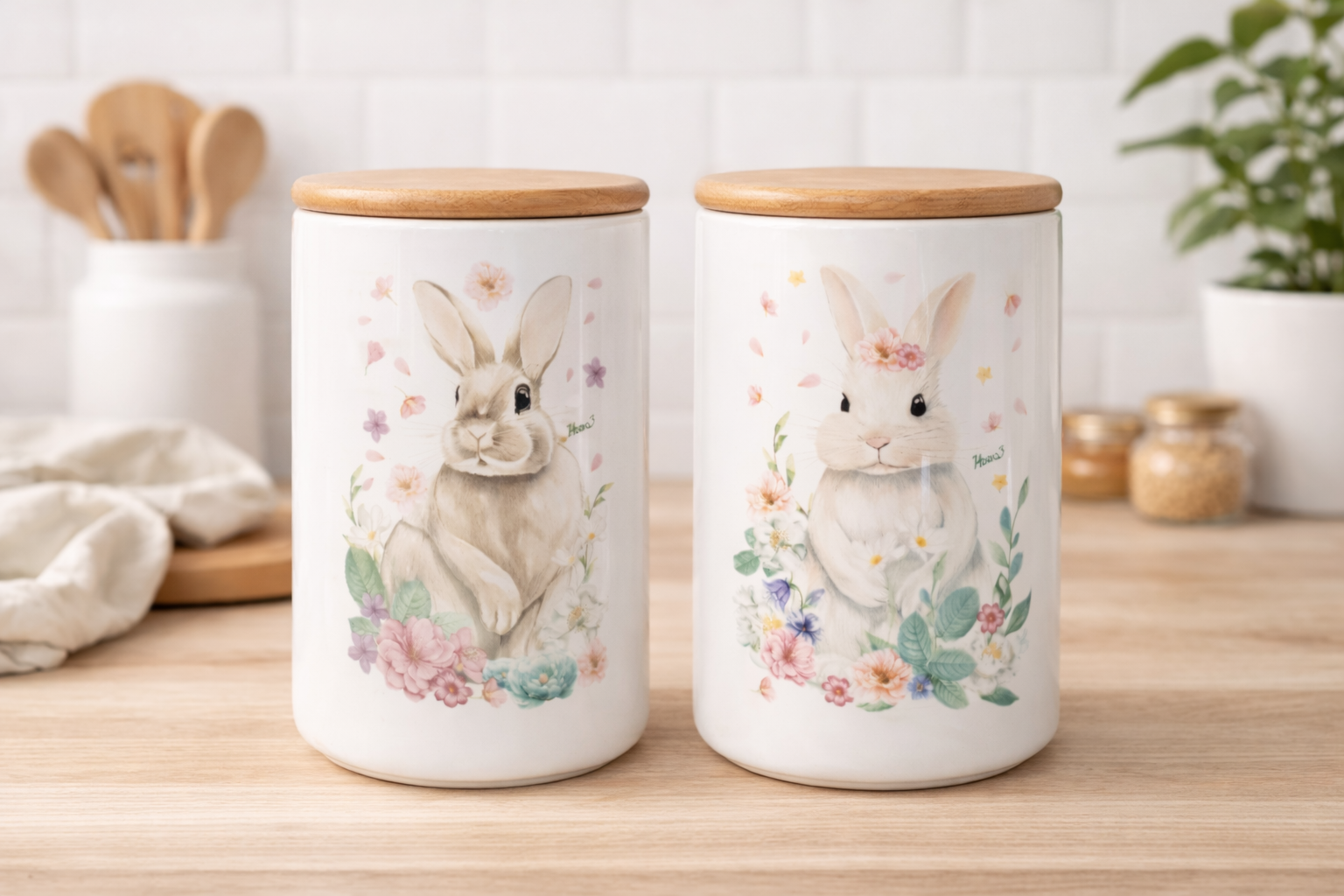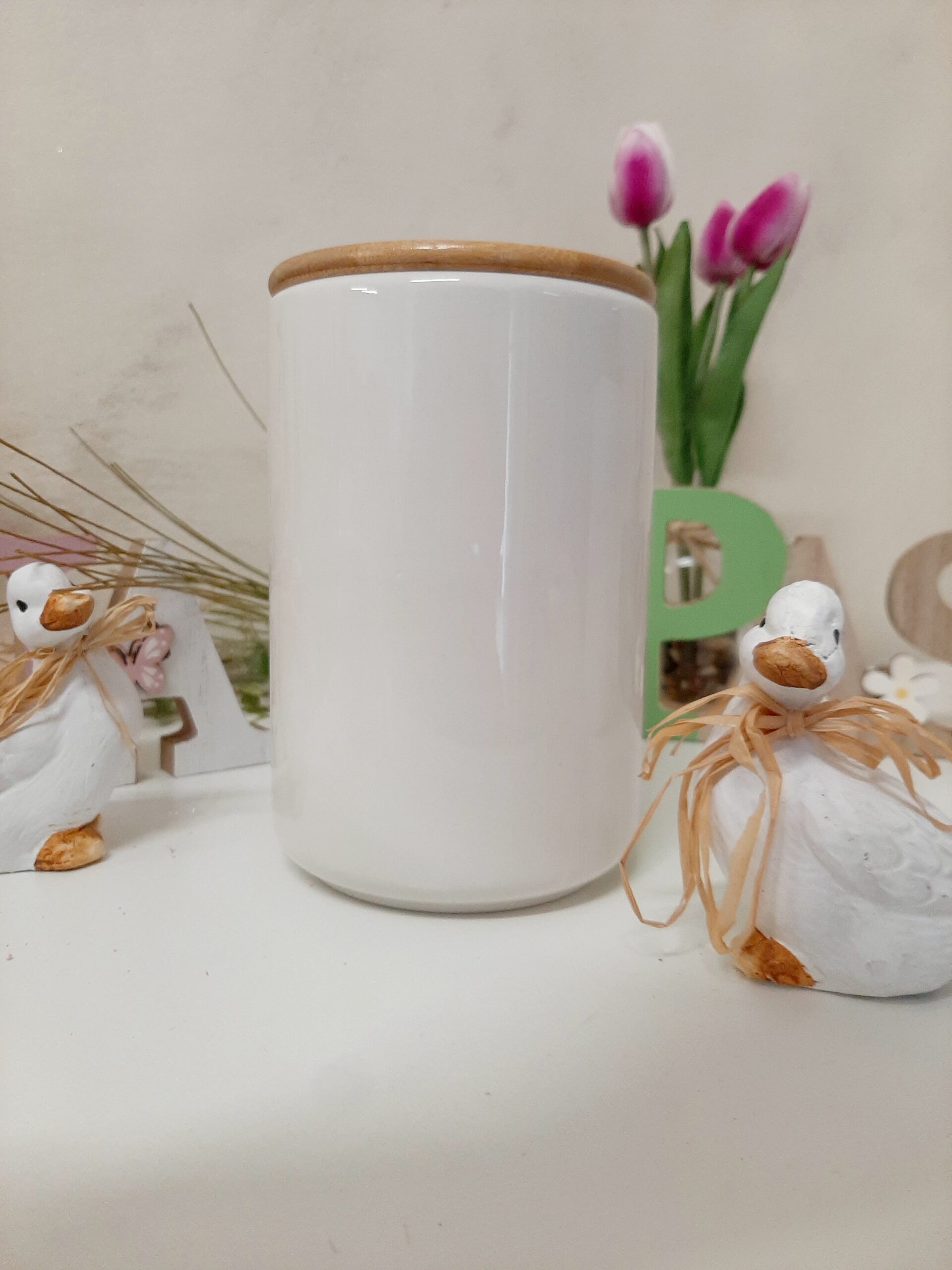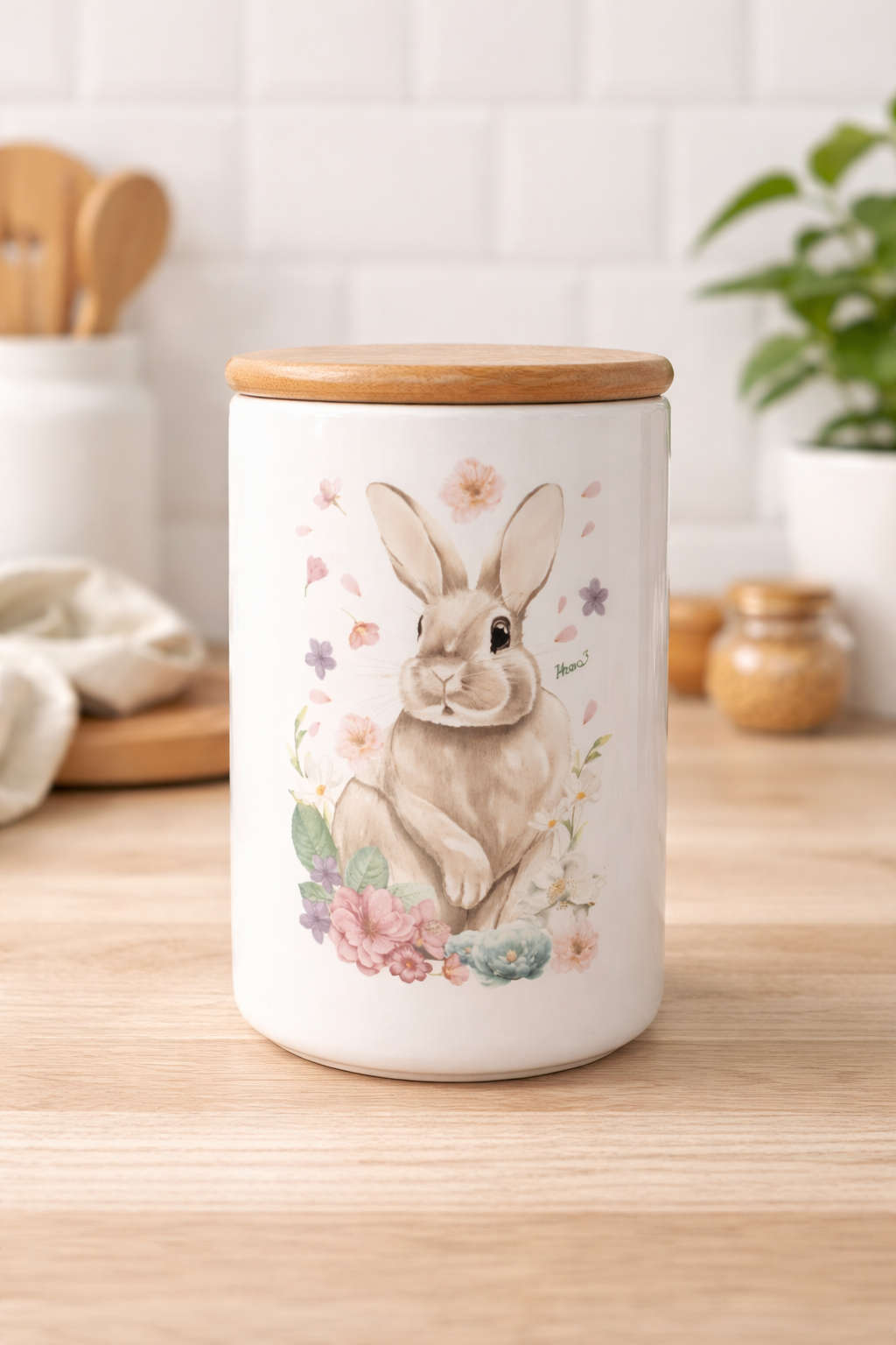Barattolo di Pasqua in ceramica alimentare con coperchio in bamboo con chiusura ermetica e scatola regalo.