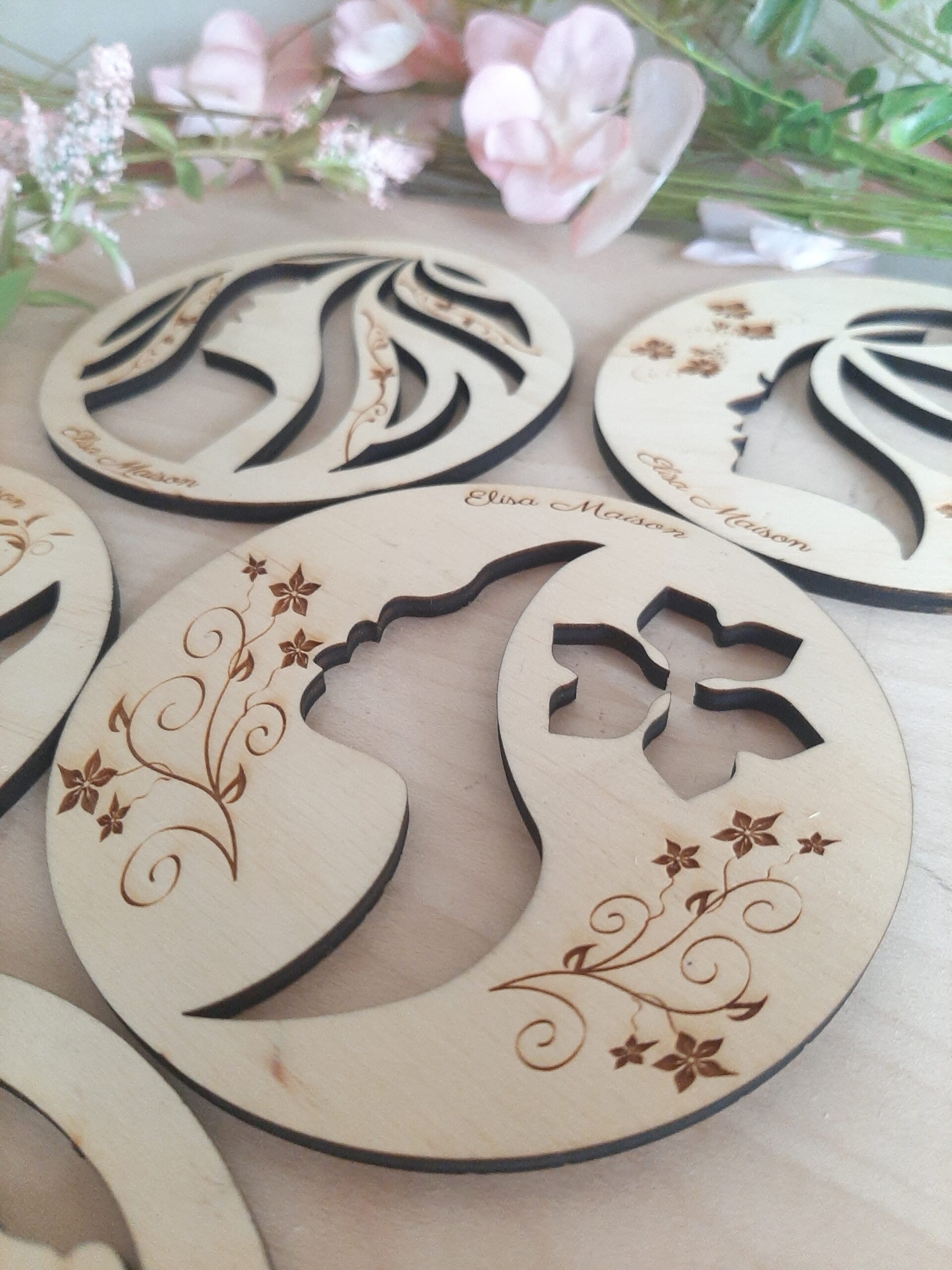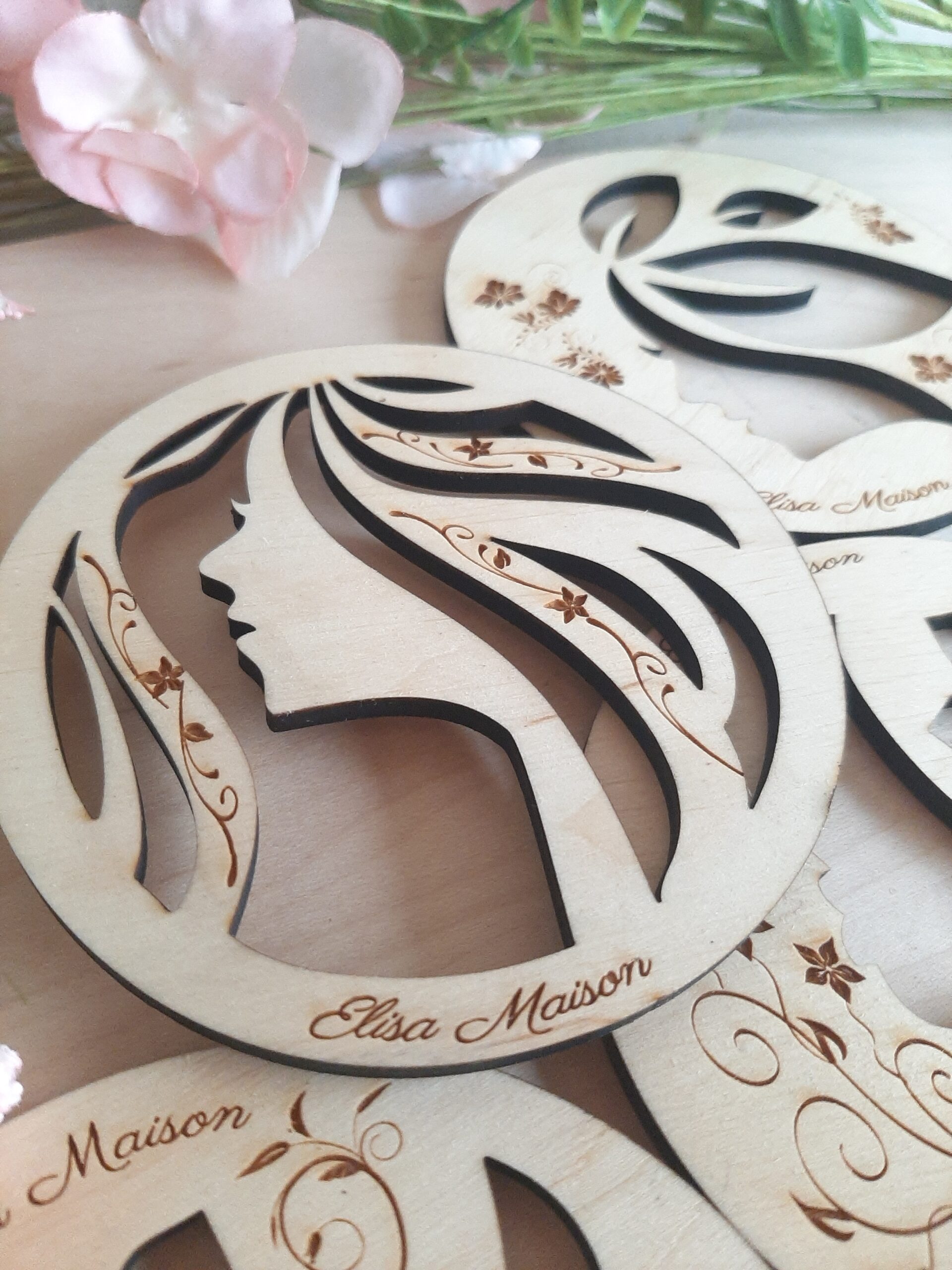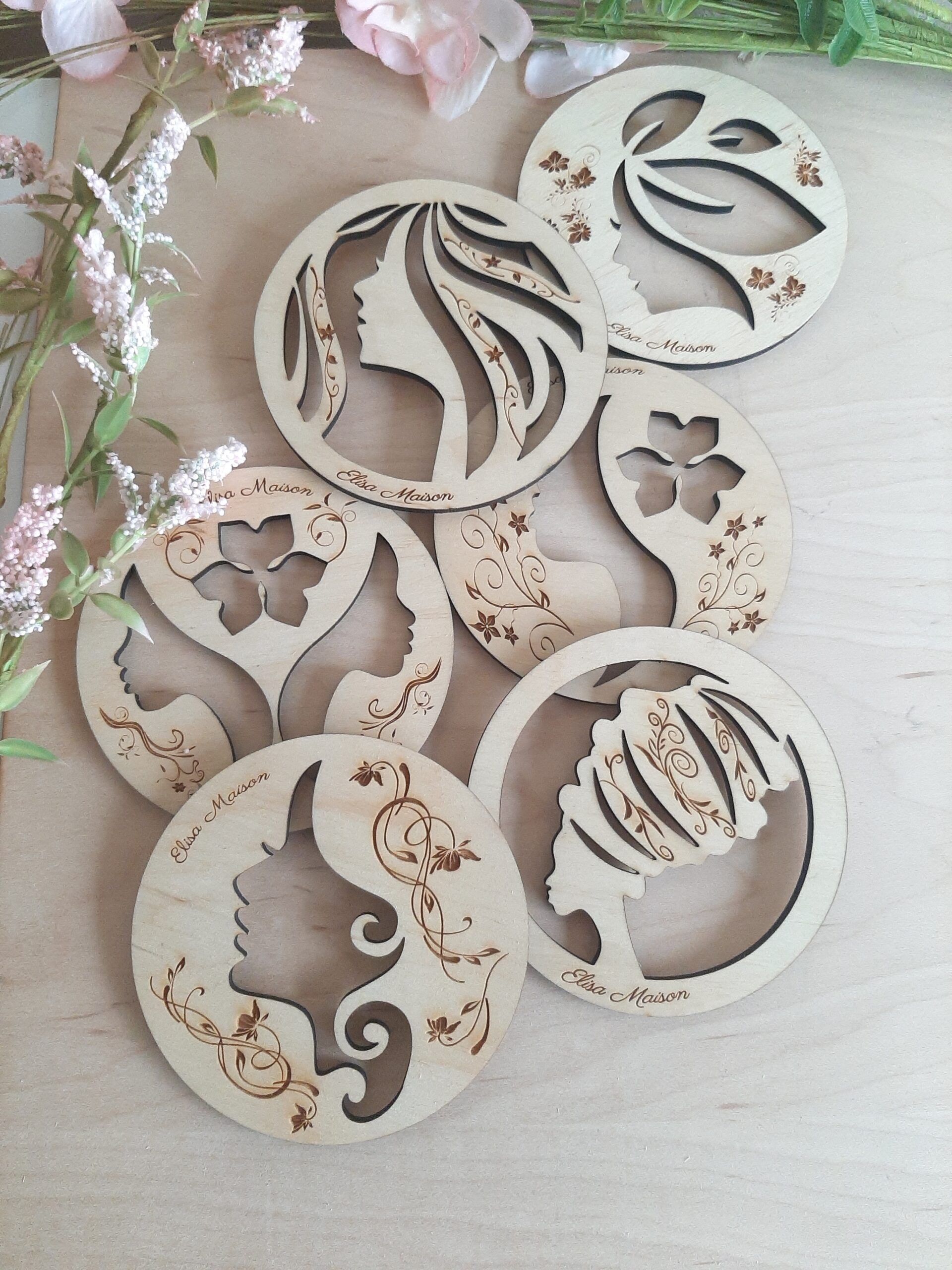 “Donna” set 6 sottobicchieri legno, conf.regalo