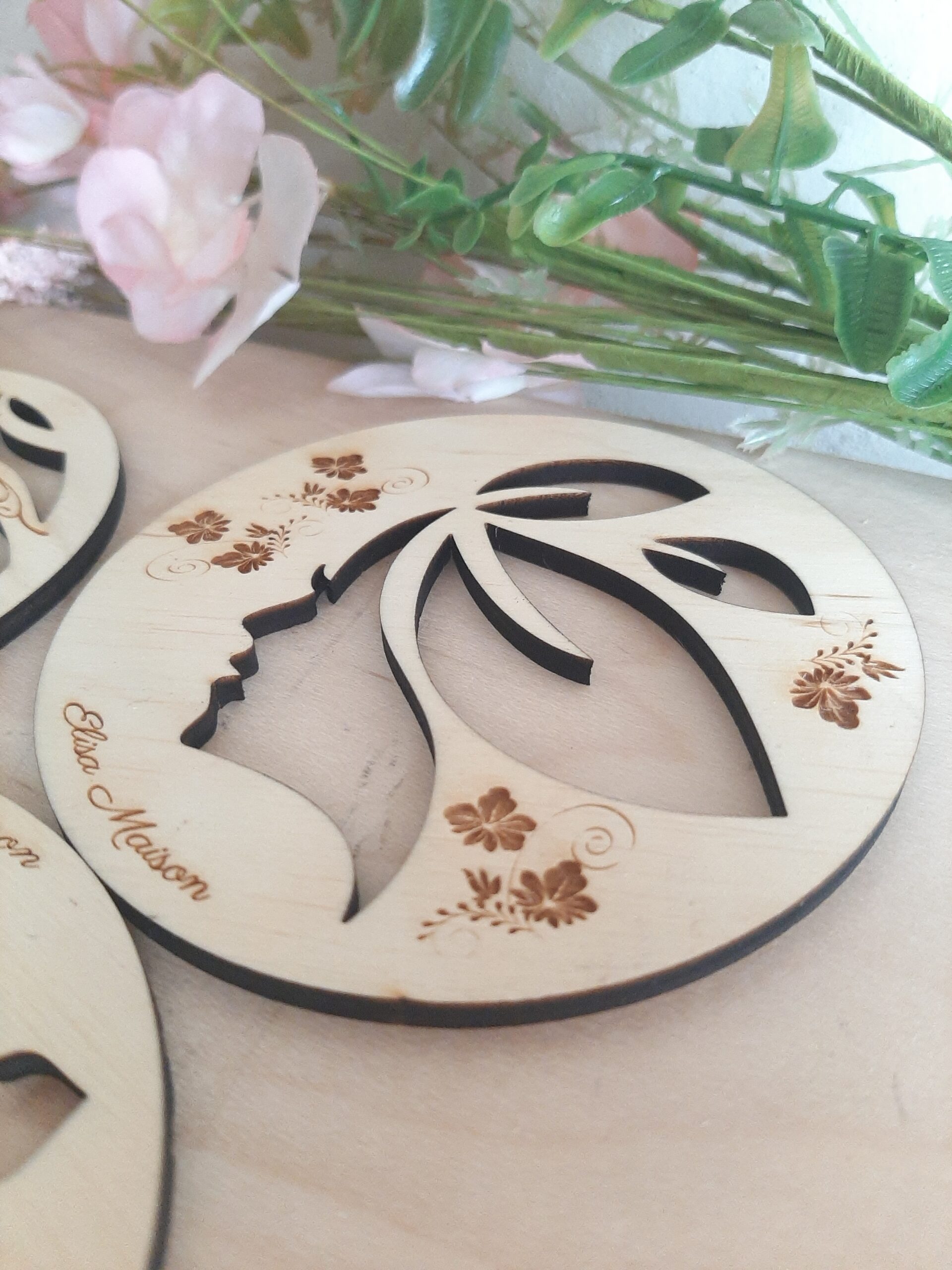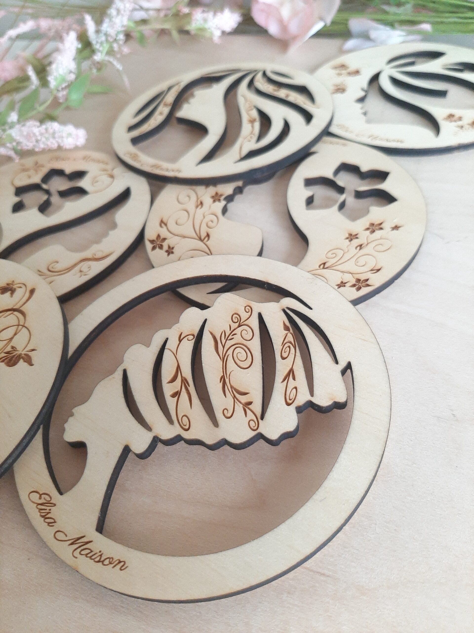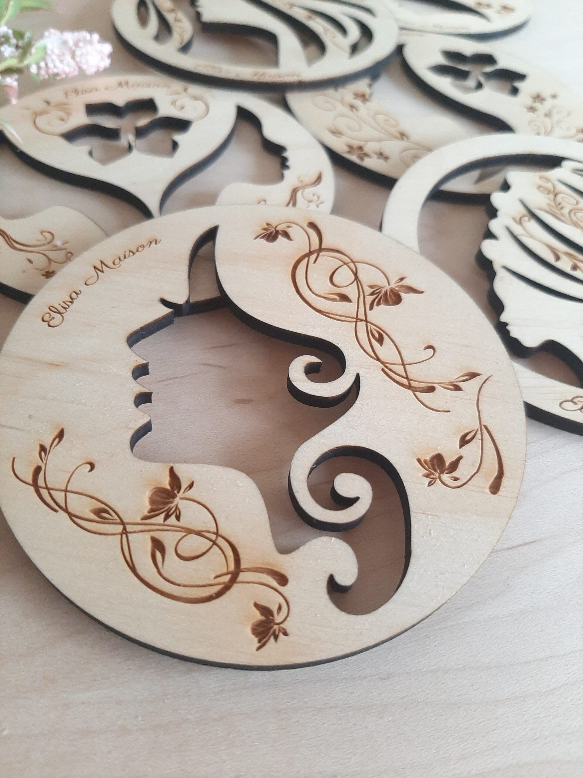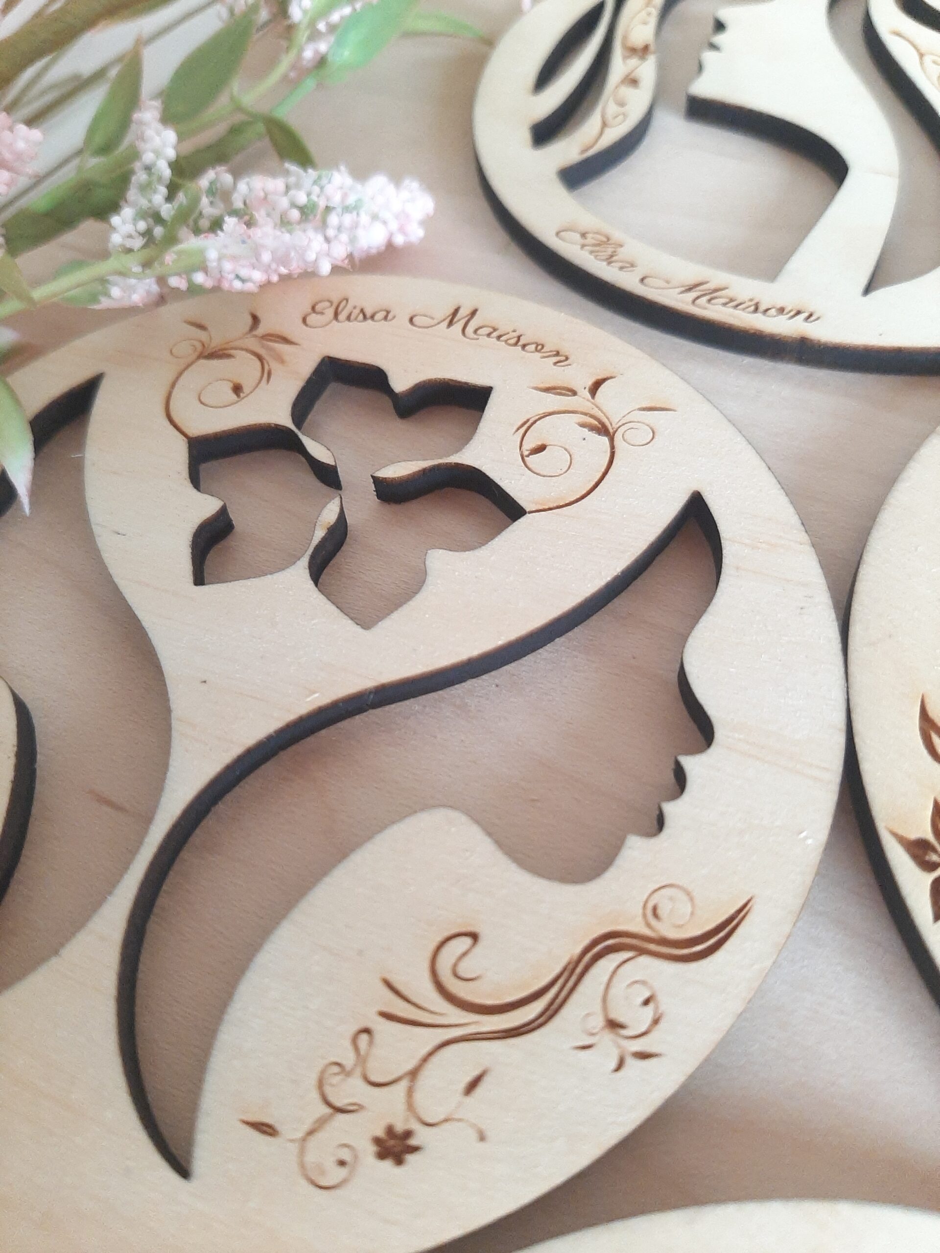 “Donna” set 6 sottobicchieri legno, conf.regalo