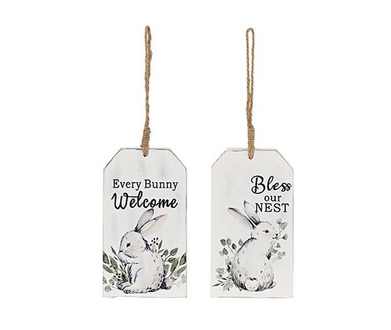 Maxi tag in legno con delicato decoro pasquale coniglietto in due versioni e scritte, completo di laccetto per attaccarlo ma anche perfetto per decorare la tavola di pasqua.