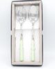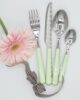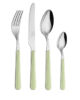 Posate in acciaio inox e manicatura a sandwich, tinta unita verde pastello polveroso, prodotte dall’azienda italiana Neva