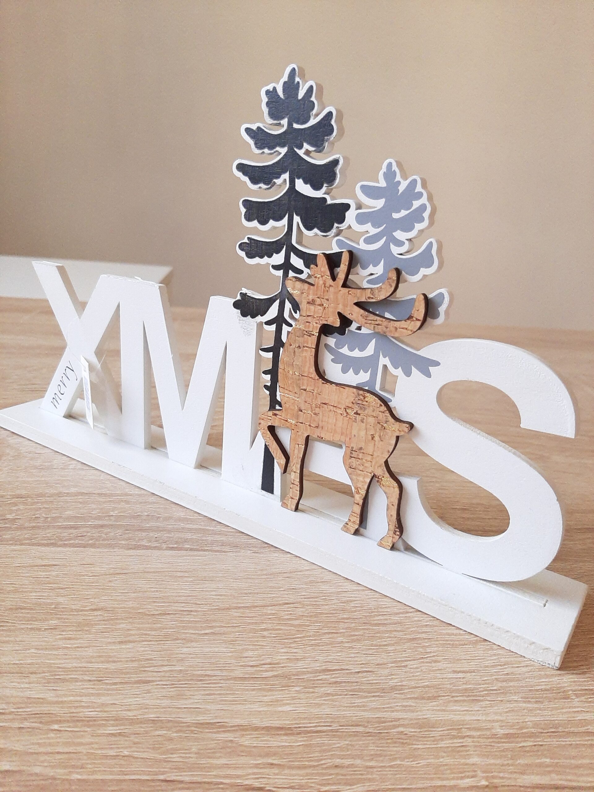 Scritta bianca Xmas in legno